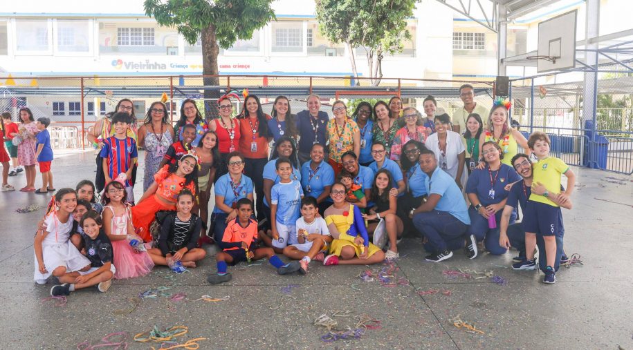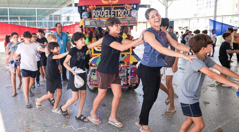 Nesta terça-feira (10), a energia do Carnaval chegou mais cedo ao Vieira, com o tradicional Bailinho do Vieirinha, animado pelo microtrio Rixô Elétrico, de Fred Menendez. O evento reuniu estudantes do 1º ao 7º ano EF, em um momento especial e repleto de diversão, antes do início do recesso.