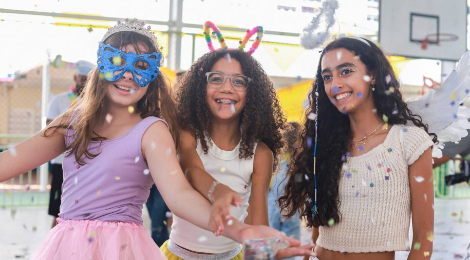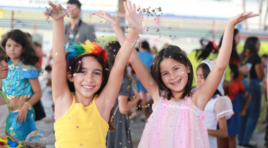 Fantasias e adereços coloridos, confetes e serpentinas de papel transformaram a quadra coberta do Vieirinha em um verdadeiro bloco da alegria. Sorrisos, música e dança marcaram o evento, que é tão aguardado pelas nossas crianças, antecipando a folia carnavalesca com amizade e integração.