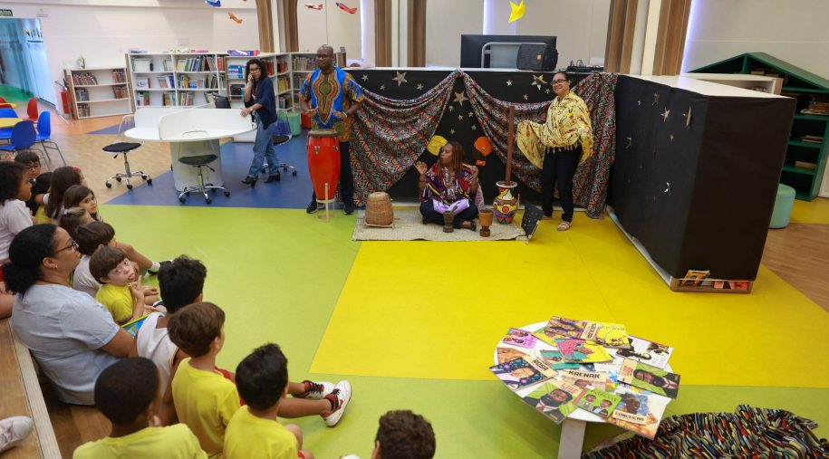 No Vieirinha, a Biblioteca Gino Raísa SJ apresenta contos africanos nas atividades de contação de histórias aos alunos do 1º ao 5º ano do Ensino Fundamental (EF). Estão sendo apresentadas às crianças narrativas tradicionais de diferentes regiões da África, repletas de ensinamentos, personagens marcantes e sabedoria ancestral, em uma forma lúdica de aproximar o público das raízes culturais africanas.