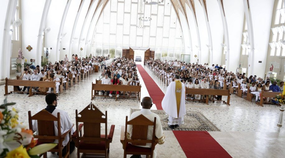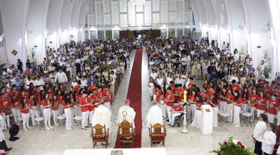Cerca de 300 estudantes do Vieira afirmam iniciação cristã em sacramentos da Crisma e 1ª Eucaristia