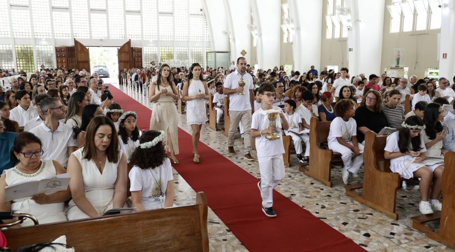 “No caso da Primeira Eucaristia, outubro é dedicado às missões na Igreja e que nos convida a celebrar grandes devotos da fé: Santa Teresinha do Menino Jesus, Nossa Senhora Aparecida e agora também de São Carlo Acutis, que também foi um jovem estudante de escola jesuíta”, ressaltou o coordenador da Formação Cristã, professor João Ramiro. As celebrações no mês, envolvendo principalmente estudantes do 5º ano do Ensino Fundamental (EF), foram realizadas nos dias 1º, 8, 22 e 29, em momento singular de crescimento e compromisso de fé, compartilhado com as famílias dos catequisandos, em missas celebradas pelo padre Emmanuel Araújo SJ, que é assistente espiritual do Vieira e reitor do Santuário.