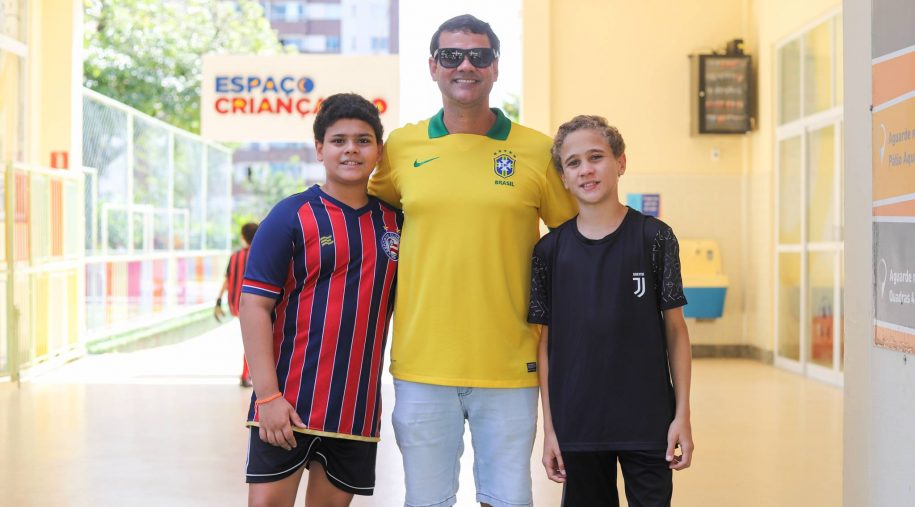 O paizão João Paulo Cardoso achou “excelente a manhã do Dia dos Pais”. Ele participou das atividades com os filhos Alexandre, do 7º ano do Ensino Fundamental (EF) e Fernando, do 4º ano EF. “Eram tantas as opções que não sabia o que era melhor fazer”, diz ele que gostou mais da parte dos jogos e brinquedos na quadra. “Foi tão bom que poderia ter sido mais tempo e, inclusive, sugiro avaliar colocar, no próximo ano, duas quadras para o futebol devido à grande procura”, completou.