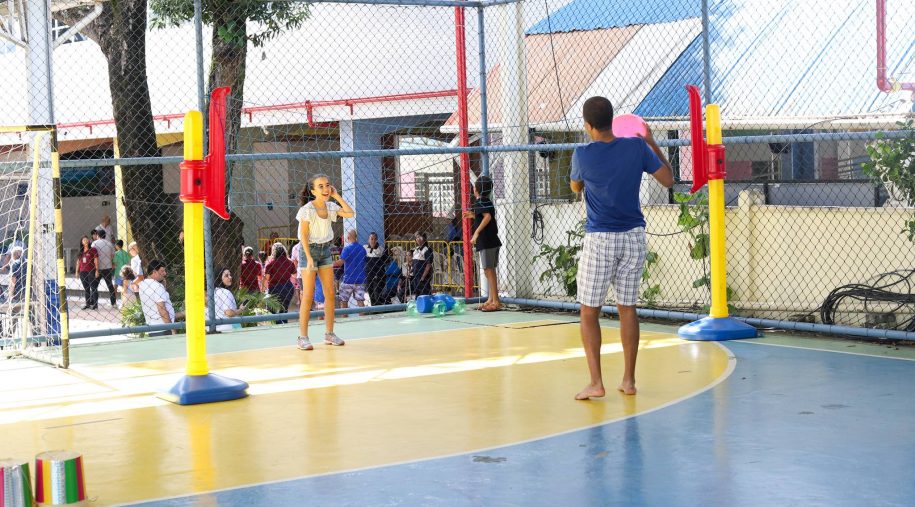 A segunda parte do evento ocorreu no Vieirinha: pais, filhas e filhos totalmente integrados em jogos, na torcida, nas brincadeiras de pescaria ou carrinho de rolimã, entre tantas da Brinquedoteca do Professor Sócrates Correia (Educação Física) – fazendo do espaço escolar também um local de construção de memórias afetivas inesquecíveis.