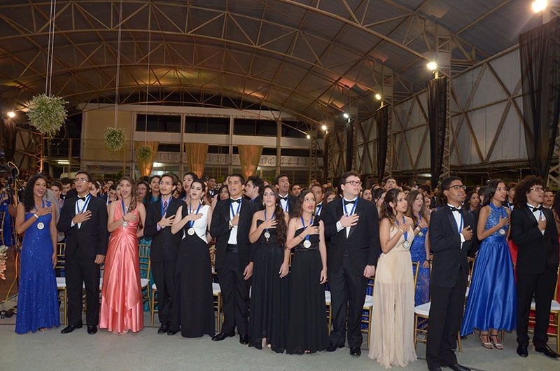 Durante a solenidade, que aconteceu no domingo (15/11), os oradores de cada turma subiram ao palco para agradecer a todos que contribuíram para o êxito deles. O evento contou com a participação especial da Academia Vieirense de Letras e Arte (AVLA). Em um gesto significativo, os educadores presentes entregaram medalhas a cada aluno concluinte, como forma de reconhecer o empenho nos anos de estudo. “A certeza que fica é de que habita no coração dos alunos a identidade vieirense, que tem como princípio básico a excelência acadêmica e a formação humana, convocando ao exercício da ética, do cuidado permanente na relação consigo mesmo, com os outros e com o mundo”, ressaltou a orientadora educacional da 3ª série EM, Mara Raquel Valverde.