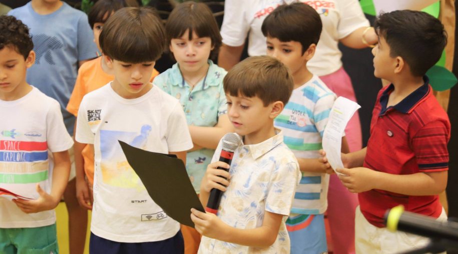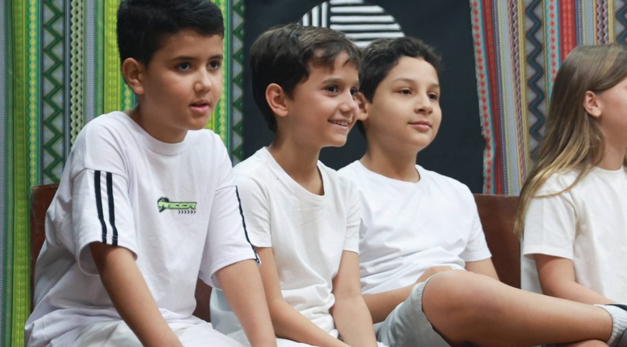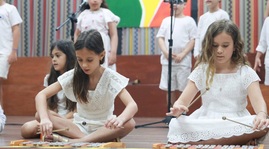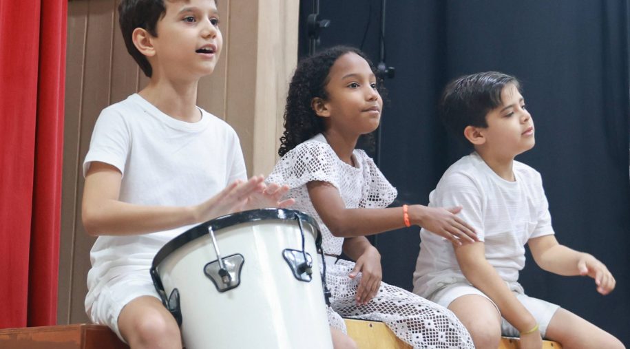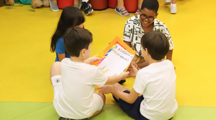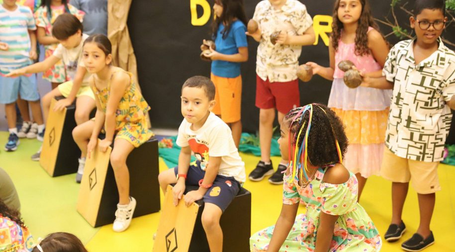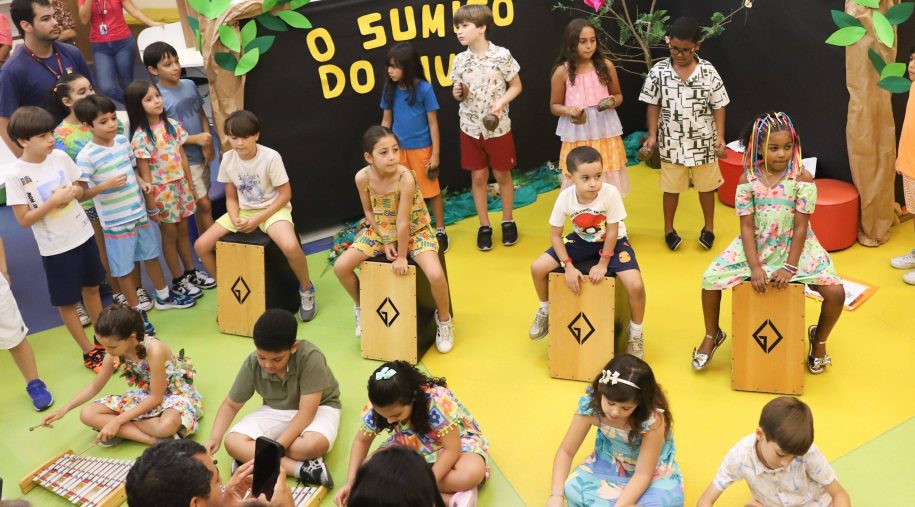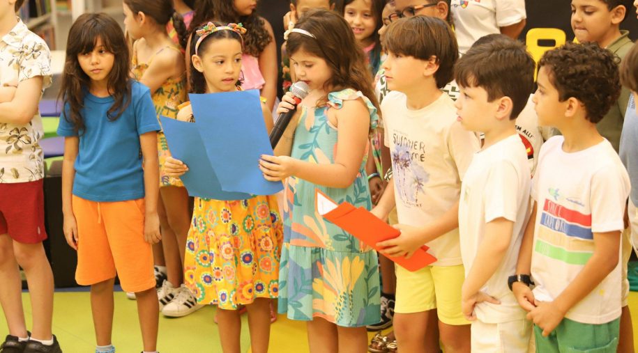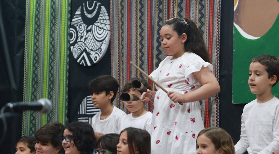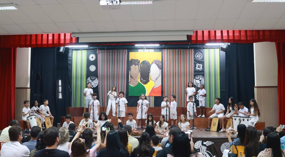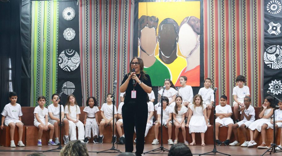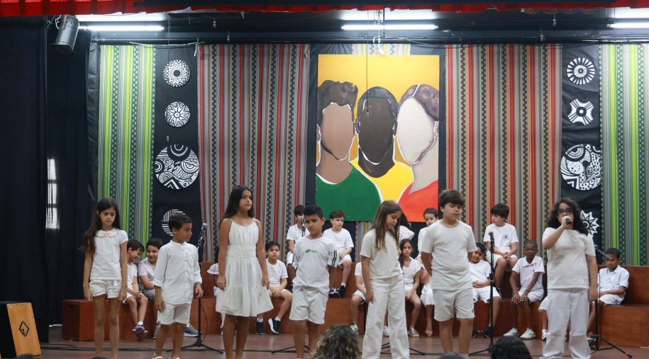 Na culminância do projeto do 2º ano EF, realizada por turmas de 20 a 23 de outubro, as crianças expressaram pela arte um pouco das atividades desenvolvidas. Elas apresentaram, no anfiteatro da biblioteca, um musical inspirado no livro “Não Derrame o Leite!”, que norteou as atividades realizadas. “É um projeto que nasce do desejo de expandir o olhar das crianças sobre quem somos — como povo, como lugar, como história”, informou a coordenadora pedagógica da série, professora Adriana Novis.