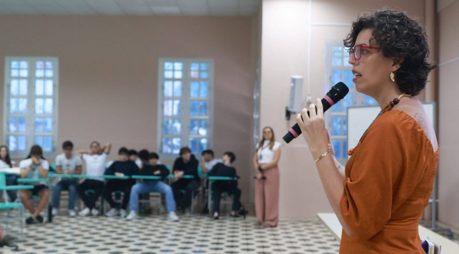 Em dois momentos, na Biblioteca Jorge Amado e no Salão Anísio Teixeira, a escritora Marília Neri conversou com os alunos sobre os romances “Outros lares”, “Outros Caminhos” e “Outras Esquinas”, da trilogia “Outras Histórias”. A escritora também é autora de “Os Outros”, “Parentela”, “Elisa, (embaixo dos)tapetes da memória “e “Lis, Grama, Coração”. No encontro com os estudantes, ela também abordou temas que contribuíram com os jovens nas reflexões sobre projeto de vida. Confira um pouco mais no vídeo!