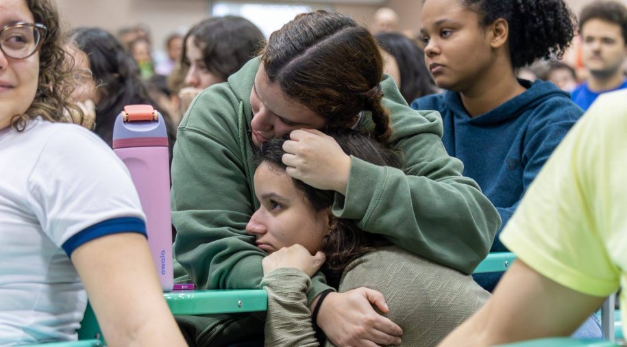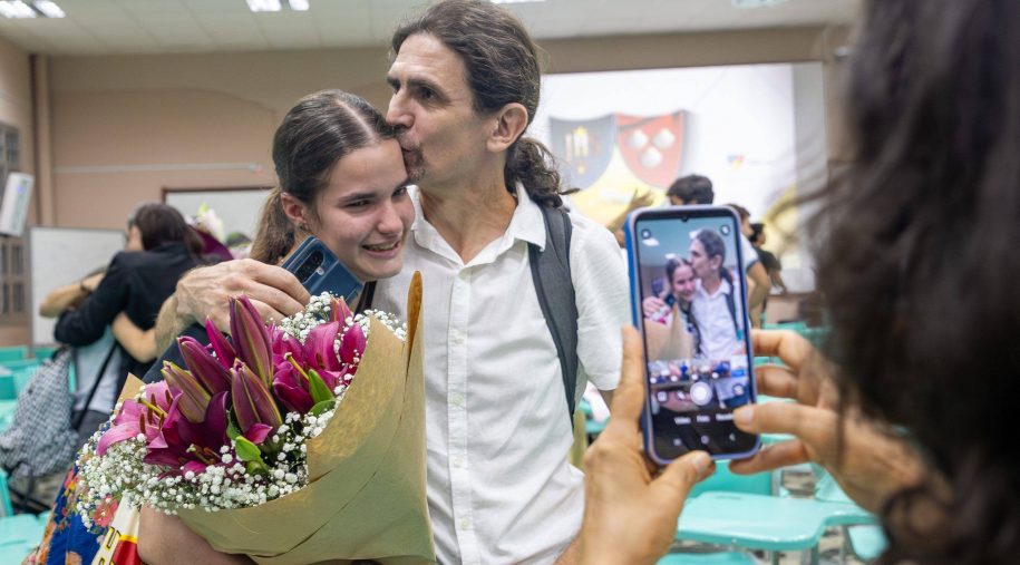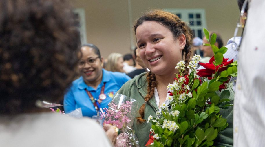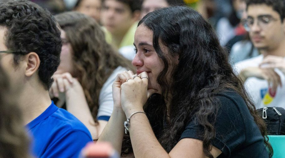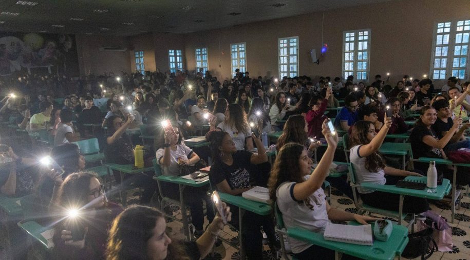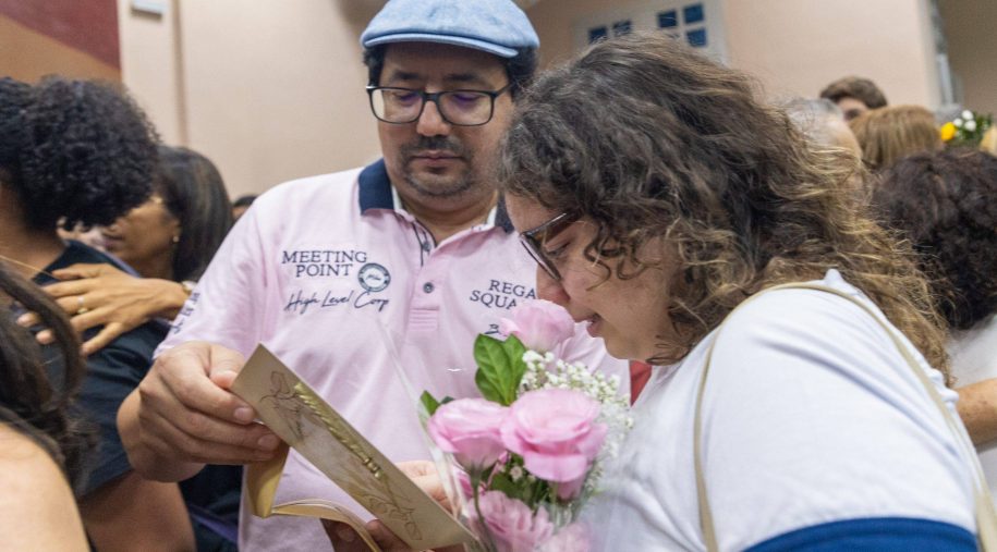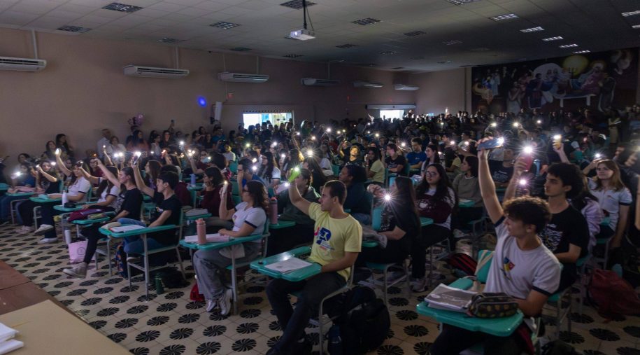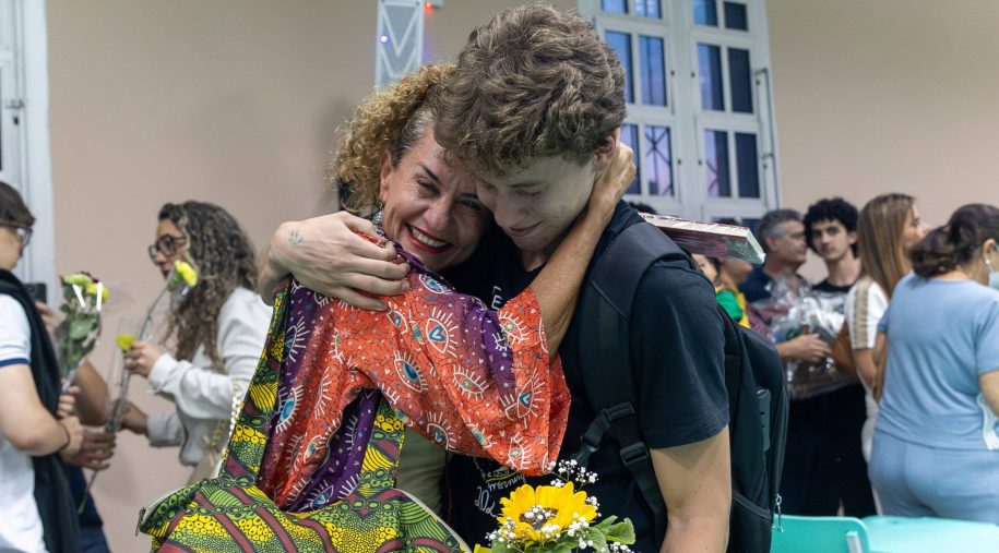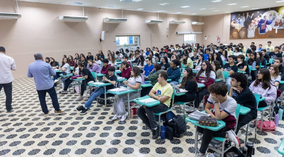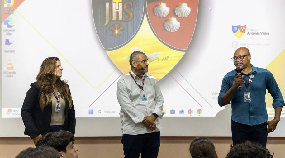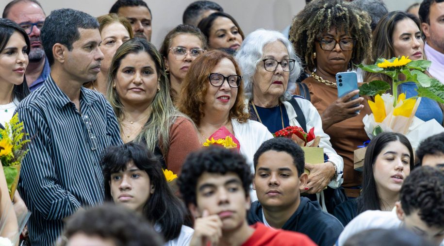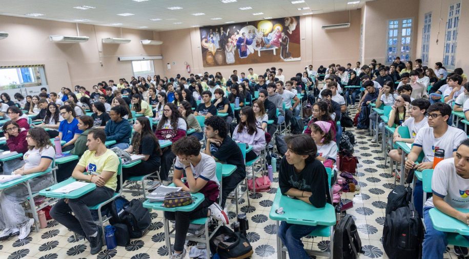 Em dia especialmente emocionante, os pais e demais familiares dos estudantes da 3ª série do Ensino Médio do Colégio Antônio Vieira puderam homenagear os estudantes com flores, no encerramento de uma das aulas da etapa final de revisão para o Exame Nacional do Ensino Médio (Enem), na última quarta-feira (5). O momento especial foi organizado pela equipe pedagógica do Vieira, com uma programação com músicas e orações conduzidas pela equipe de Formação Cristã, além de discursos emocionados de membros do Conselho Diretivo do Vieira e colaboradores de diversos setores do colégio que acompanharam a rotina dos jovens nesse último ano da etapa escolar.
