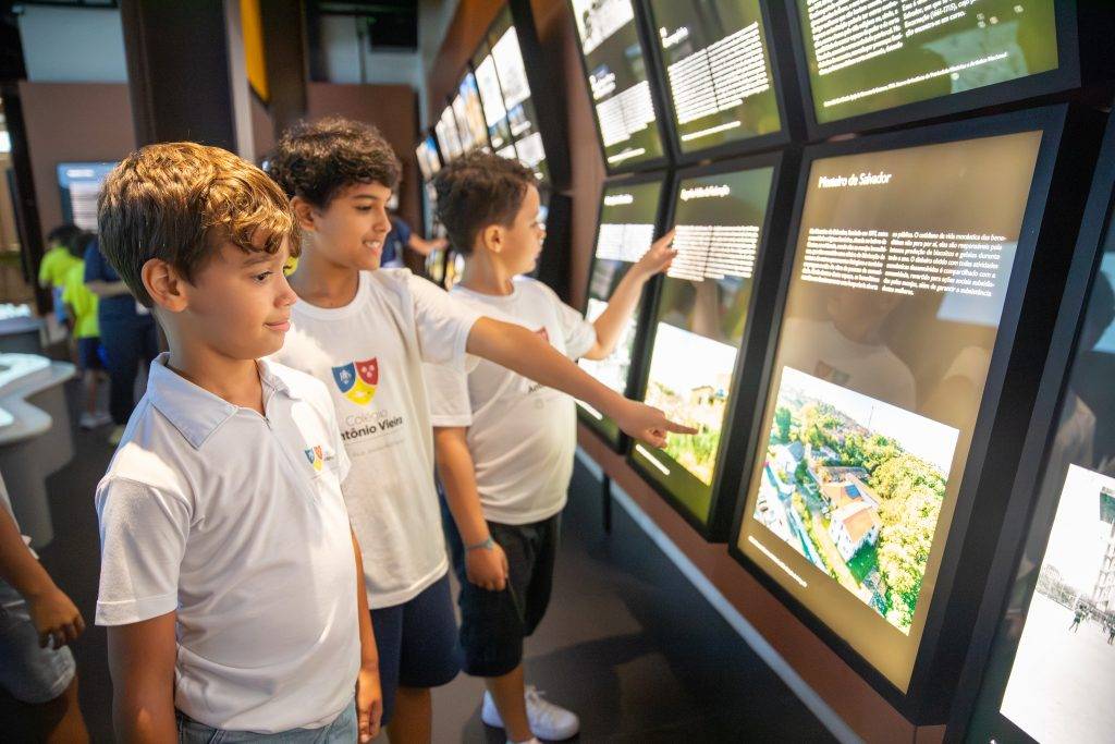 Com o objetivo de ampliar as aprendizagens sobre a história da capital baiana, as crianças alunas do 3º ano do Ensino Fundamental (EF) do Colégio Antônio Vieira visitaram, nos últimos dias 7, 10 e 14 – conforme a turma, a Casa das Histórias de Salvador, no bairro do Comércio. A aula de campo fez parte das atividades do projeto interdisciplinar Salvador: Território Africano, permitindo aos estudantes consolidar conhecimentos, ao conferir o acervo do centro cultural, além de ter acesso a curiosidades nas apresentações feitas pelos guias do local. Na mesma semana, estudantes do 7º ano EF, por sua vez, estiveram nas Obras Sociais de Irmã Dulce (Osid), no Largo de Roma, como parte do projeto Experiência de Fraternidade, realizado em parceria pela equipe de Formação Cristã e Serviço de Orientação Educacional (SOE).