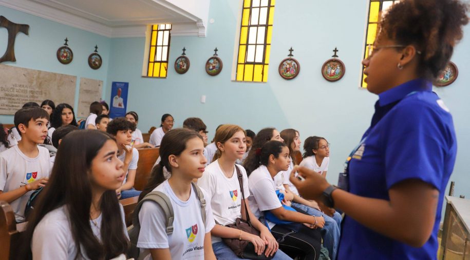 Com o objetivo de ampliar as aprendizagens sobre a história da capital baiana, as crianças alunas do 3º ano do Ensino Fundamental (EF) do Colégio Antônio Vieira visitaram, nos últimos dias 7, 10 e 14 – conforme a turma, a Casa das Histórias de Salvador, no bairro do Comércio. A aula de campo fez parte das atividades do projeto interdisciplinar Salvador: Território Africano, permitindo aos estudantes consolidar conhecimentos, ao conferir o acervo do centro cultural, além de ter acesso a curiosidades nas apresentações feitas pelos guias do local. Na mesma semana, estudantes do 7º ano EF, por sua vez, estiveram nas Obras Sociais de Irmã Dulce (Osid), no Largo de Roma, como parte do projeto Experiência de Fraternidade, realizado em parceria pela equipe de Formação Cristã e Serviço de Orientação Educacional (SOE).