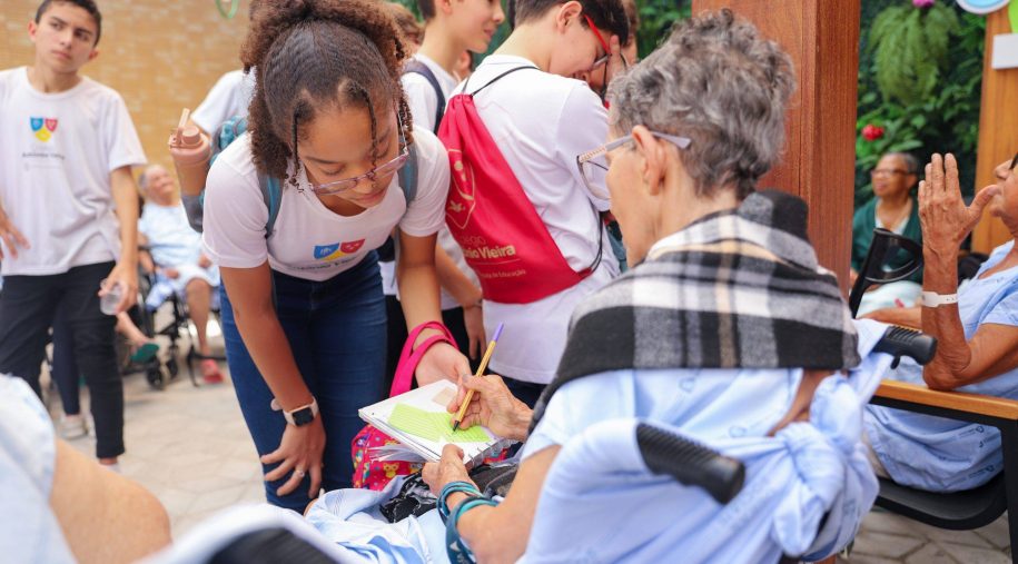 O exemplo de Santa Dulce dos Pobres e suas obras assistenciais são um legado para as novas gerações. Uma referência para o projeto pedagógico dos alunos do Vieira, que não se limita apenas à excelência acadêmica, buscando oferecer uma formação integral aos estudantes. A partir de experiências de fraternidade, os alunos desenvolvem princípios humanistas cristãos e as chamadas soft skills, que os preparam para atuar em prol da transformação social. Na visita ao Centro de Geriatria e Gerontologia das Osid, no último dia 16, os estudantes do 7º ano EF aprenderam um pouco mais sobre respeito, empatia, solidariedade e amor ao próximo. Eles também conheceram a história da santa baiana e como ela também fez e continua fazendo história na cidade de Salvador, quando visitaram o Memorial e o Santuário Santa Dulce dos Pobres, além do monumento em homenagem ao Anjo Bom da Bahia.