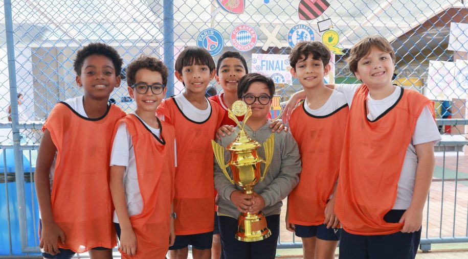O estímulo ao futebol e outros esportes no Vieira vai além das aulas de Educação Física. Até mesmo no “baba” do recreio, as crianças já começam cedo a desenvolver habilidades conquistadas com a prática, como trabalho em equipe, dedicação, respeito ao próximo, compromisso e ética. Assim, também agora em outubro, foi realizada a final do Campeonato do Intervalo dos times do 4º ano do Ensino Fundamental (EF). Neste caso, a competição saudável, com direito a premiação e tudo, conta com o apoio do Serviço de Vida Comunitária (Sevic) e equipe pedagógica da série.