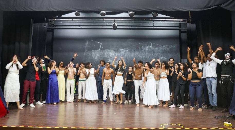 Com muita sensibilidade, os alunos fizeram releituras críticas de temáticas associadas aos livros “Na Minha Pele”, de Lázaro Ramos; “O Cortiço”, de Aluísio de Azevedo; e “Gota D’Água”, de Chico Buarque, evidenciando, por meio da arte, situações que ainda atravessam estruturalmente a sociedade, revelando, entretanto, novos saberes, olhares e posturas. A qualidade das apresentações, em textos e performances, semelhantes às produções profissionais, impressionou a equipe pedagógica e público de estudantes presentes na Sala de Arte Sálua Chequer.