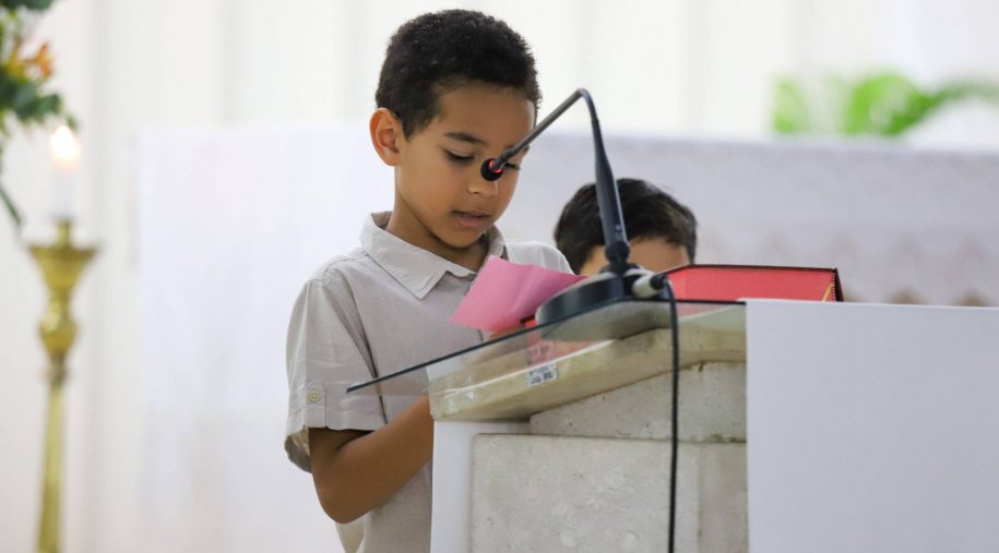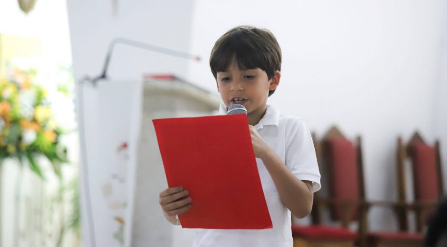 Etapa considerada referencial para as conquistas alcançadas no processo de alfabetização, a conclusão do 1º ano do Ensino Fundamental (EF) no Colégio Antônio Vieira foi celebrada pelas crianças e famílias em missa especial no último dia 17, no Santuário Nossa Senhora de Fátima. Na homilia, o padre Emmanuel Araújo SJ destacou a importância da união entre famílias e escolas para, desde cedo, oferecer às crianças uma educação inspirada nos ensinamentos humanistas cristãos, como fundamento de uma formação integral que é marco da educação da Companhia de Jesus, ordem religiosa da qual o Vieira faz parte.