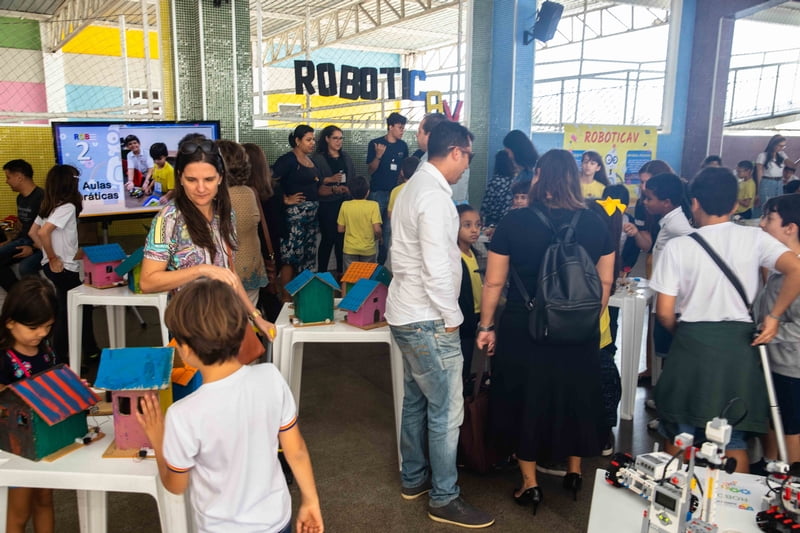As Oficinas de Robótica do Vieira (ROBOTICAV) unemcriatividade, tecnologias e materiais sustentáveis na elaboração de mini-projetos, envolvendo teoria e prática na busca de soluções inovadoras. O resultado das atividades desenvolvidas no primeiro semestre pôde ser visto pelos familiares dos estudantes em um mostra montada no dias 26 de julho, no Pátio Aquarela. Importantes habilidades e competências deramcores e vida aos robôs autônomos, gerador de energia e até um carrinho motorizado.