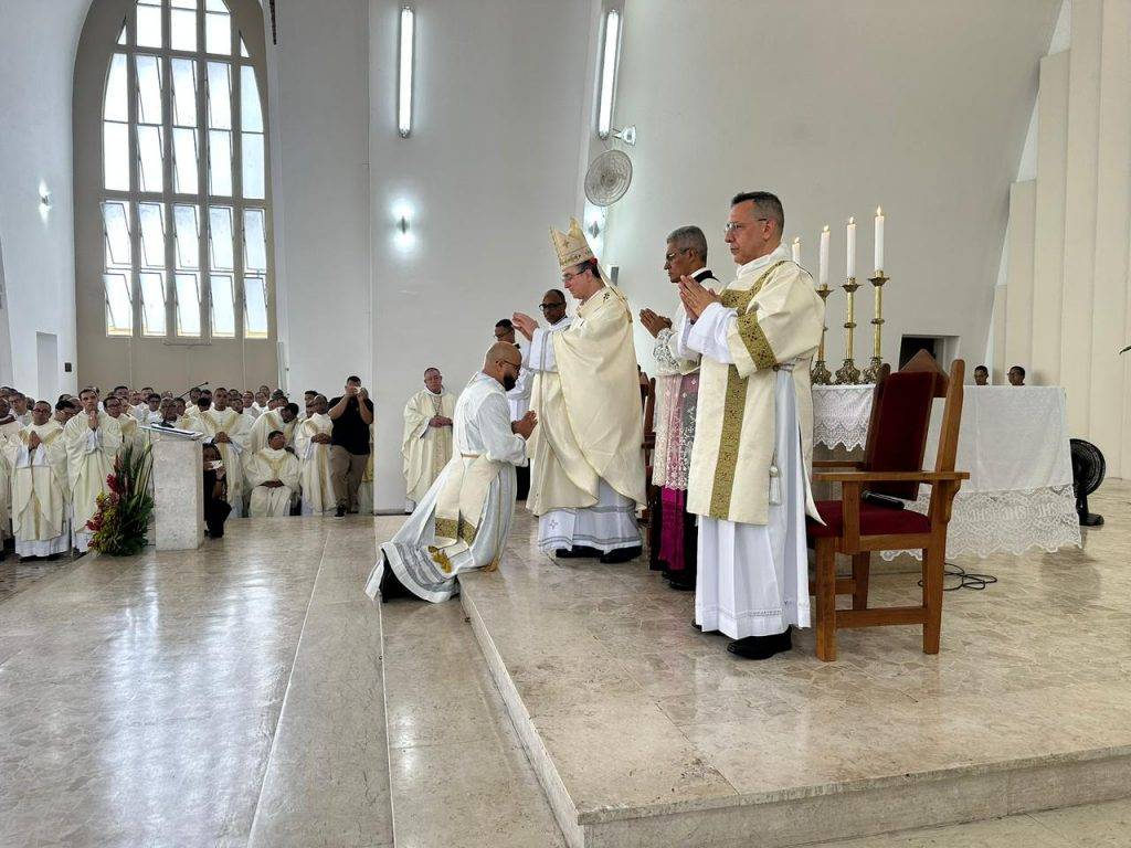 A Missa com o Rito de Ordenação Presbiteral, no sábado (29), foi presidida pelo arcebispo de São Salvador da Bahia e primaz do Brasil, cardeal Dom Sergio da Rocha, que, pela imposição das mãos e oração consecratória, conferiu aos diáconos o segundo grau do sacramento da Ordem, tornando-os sacerdotes católicos. O reitor do santuário e assistente espiritual do Vieira, padre Emanuel Araújo SJ, participou da celebração. Outros padres que atuam na Arquidiocese também estavam presentes em um dos momentos considerados mais belos dentre as tradições da Igreja Católica.