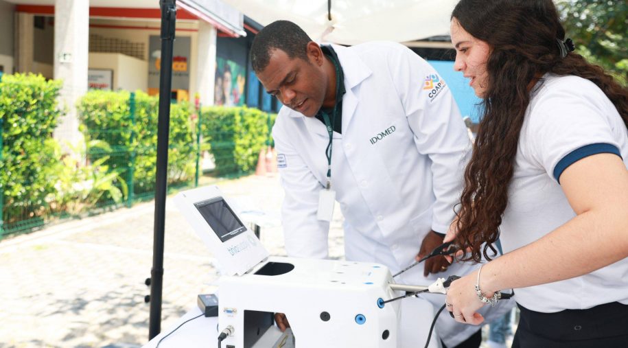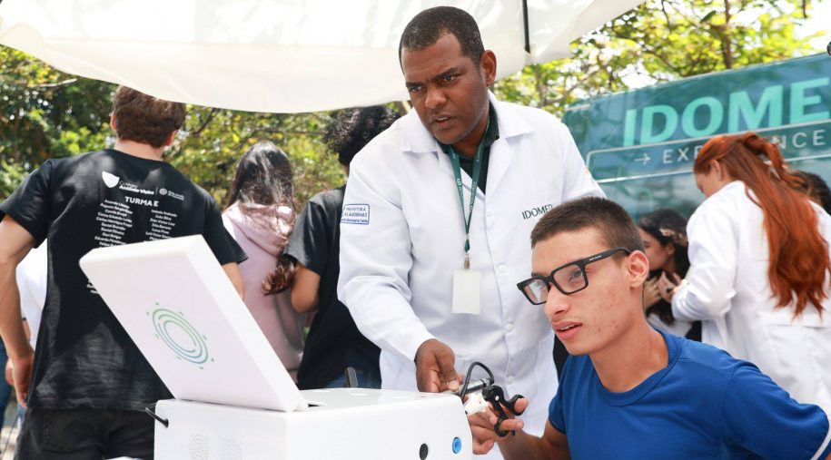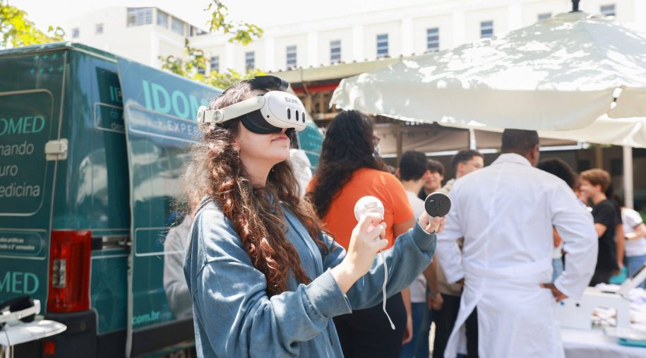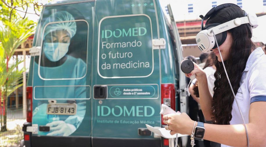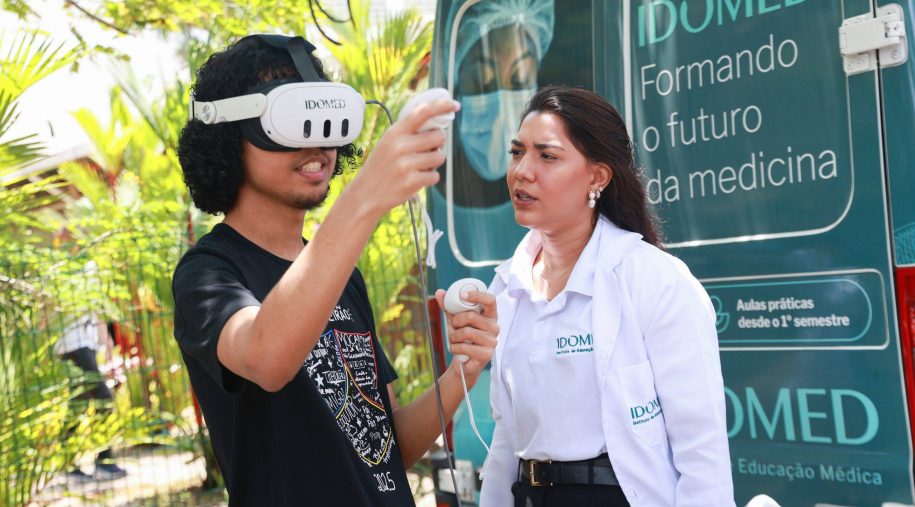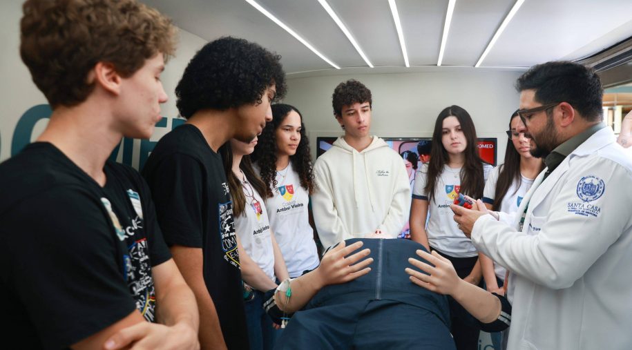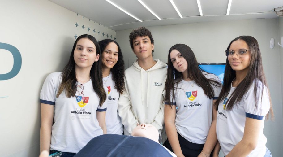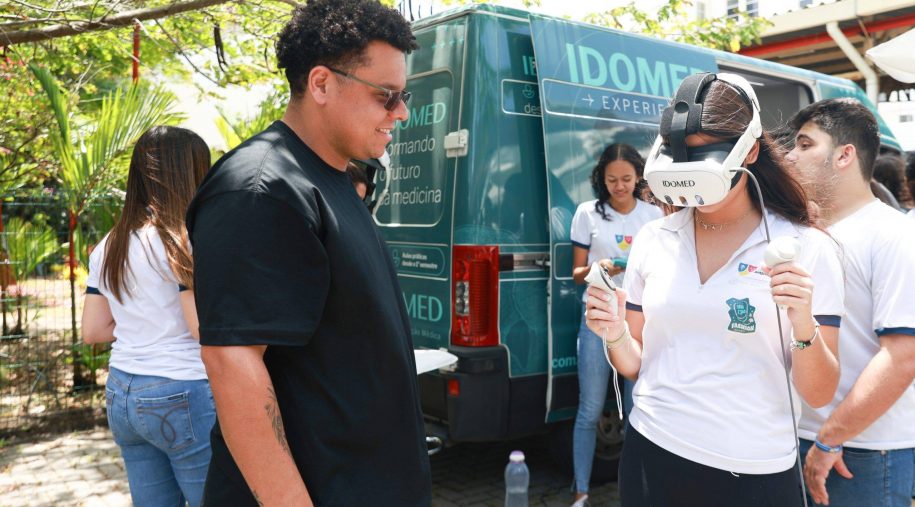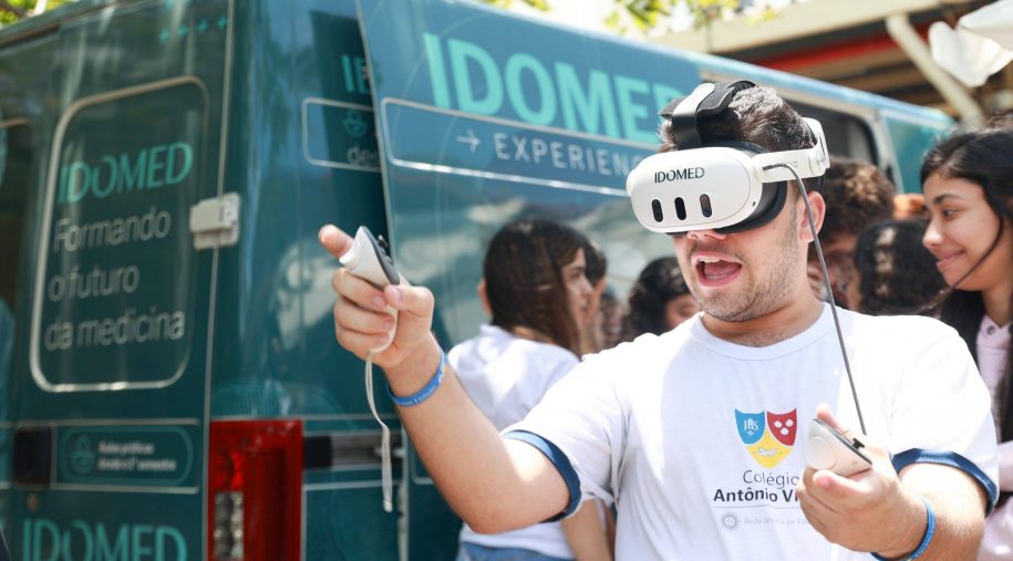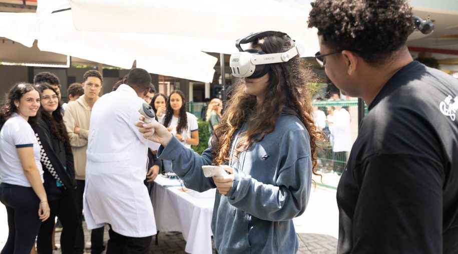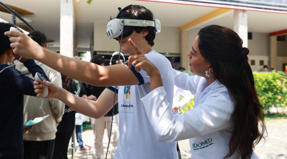 Neste mês, os estudantes do Vieira, sobretudo do Ensino Médio, ainda puderam ampliar os conhecimentos sobre o curso de Medicina, a partir de uma ação promocional da Idomed, instalada em Alagoinhas. A faculdade levou ao colégio uma van, onde estava montado um mini laboratório com equipamentos que permitiram aos estudantes vivenciar uma simulação de imersão no corpo humano, utilizando óculos VR.