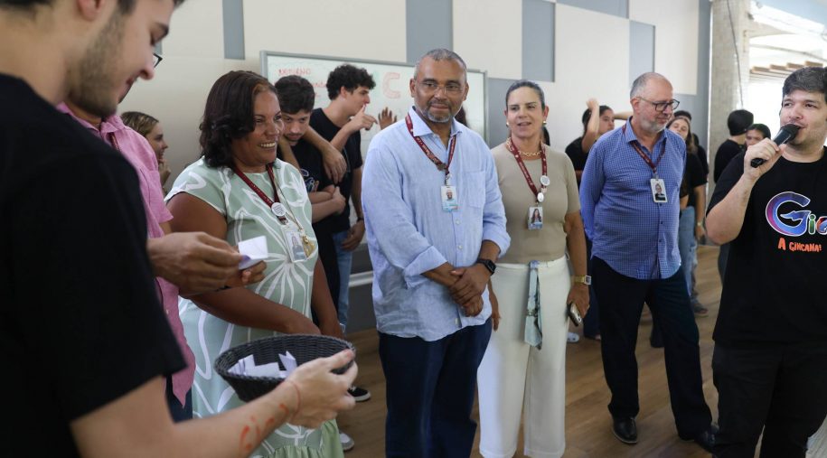 Nesta segunda-feira (09), a comunidade educativa do Vieira conheceu as equipes da edição 2026 da Gincana (GIC). O sorteio que definiu os times foi realizado pela Move Entretenimento, no Pátio Centenário, e contou com a participação dos estudantes do 6º ano EF à 3ª série EM.