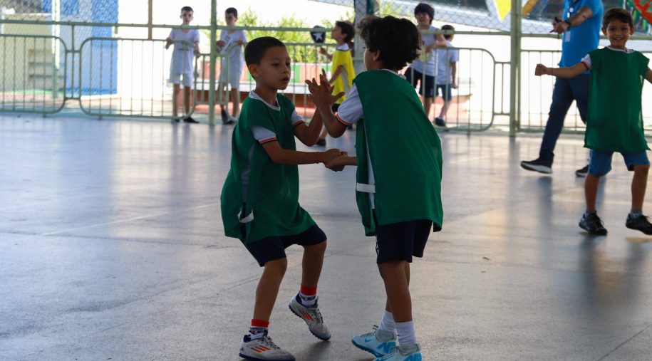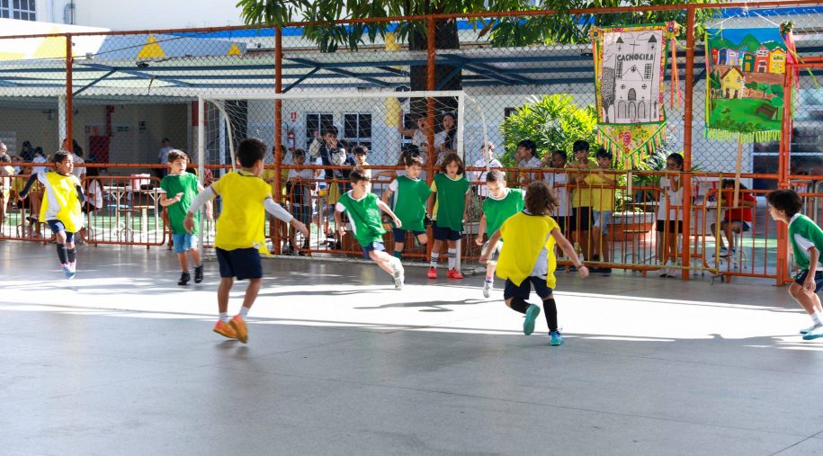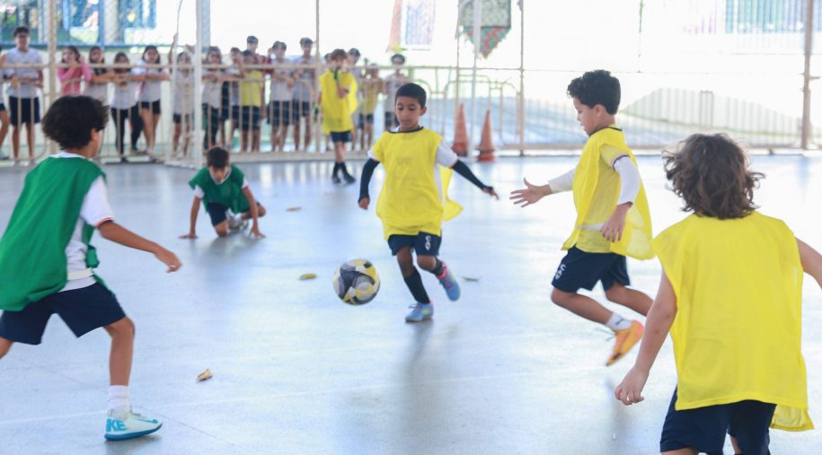 O futebol agitou os estudantes do Colégio Antônio Vieira neste mês de agosto tanto no Vieirinha, onde estudam as crianças e pré-adolescentes até o 7º ano do Ensino Fundamental (EF), quanto no Vieirão, destinado aos alunos do 8º ano EF à 3ª série do Ensino Médio. No Vieirão, as primeiras partidas do já tradicional Fut 5 mobilizaram a galera; enquanto, no Vieirinha, o destaque foi a final do Torneio do Intervalo dos times de crianças do 2º ano EF.