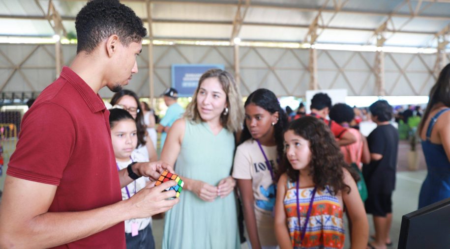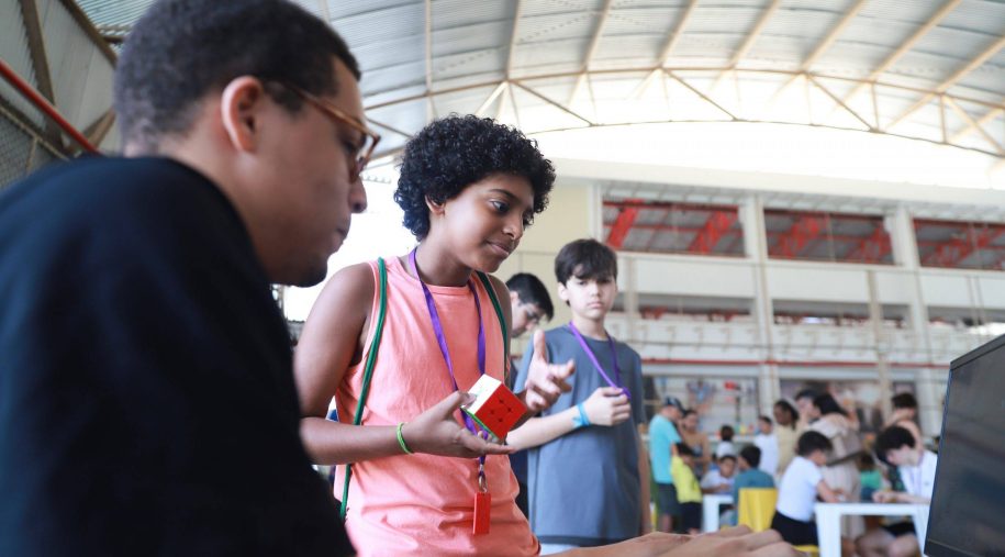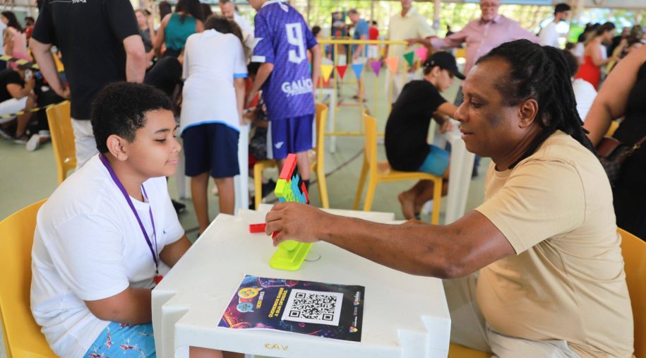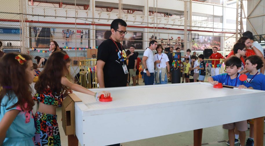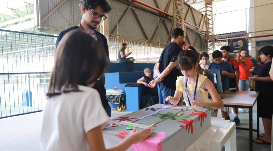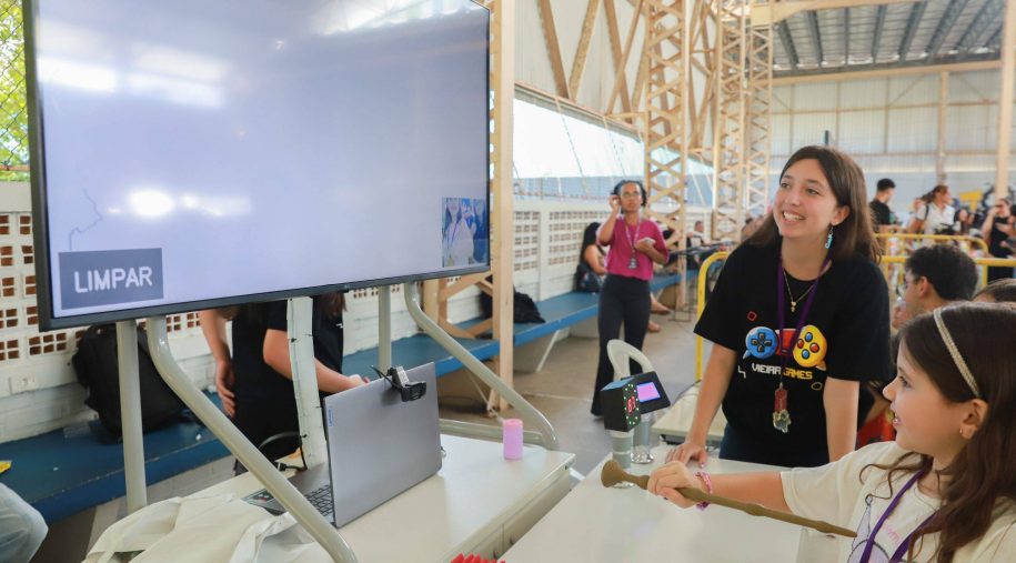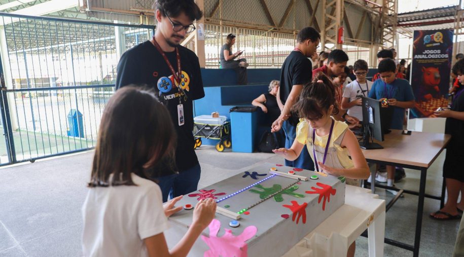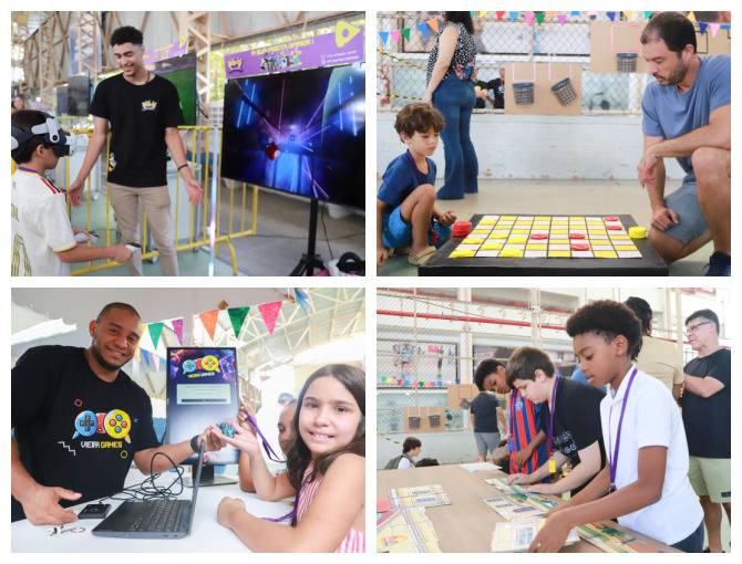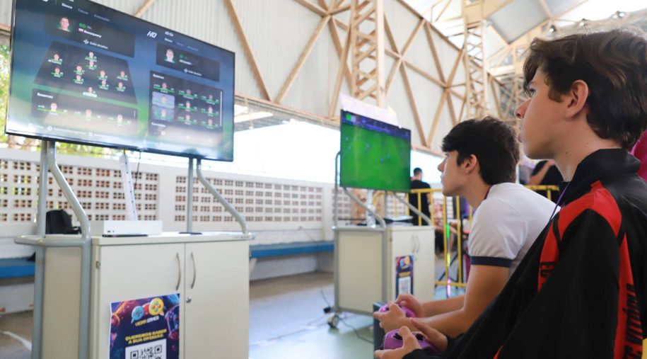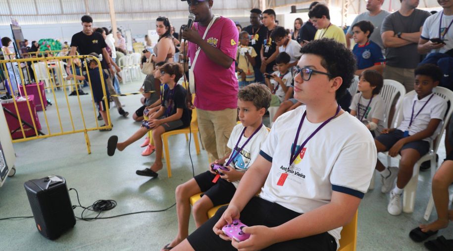 Após os discursos, foi a vez de aproveitar os recursos do evento: além dos jogos digitais e analógicos, oficinas criativas, competição de robótica, estação de realidade virtual, exposição TecMaker, entre outros. Sem querer perder nenhum dos atrativos, os participantes revelaram nas feições o quanto se divertiram e aprenderam no evento, até mesmo os adultos que acompanharam a euforia dos pequenos e jovens gamers. Confira nas fotos e “que venha 2026!”, como declarou a equipe de Mídia Educacional e Tecnologia, sob a liderança da gestora de Mídia Educacional e Tecnologia, Cláudia Zimmer, e do coordenador de Tecnologia Educacional, Rafael Gonçalves. Veja mais fotos!