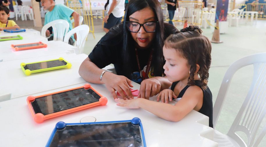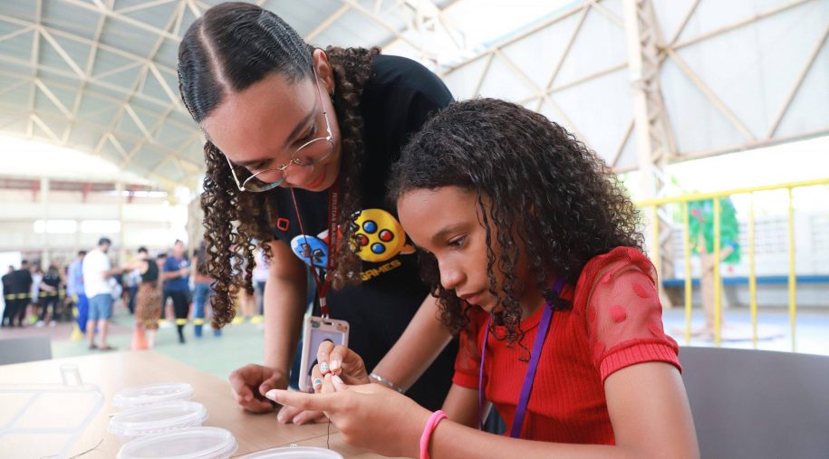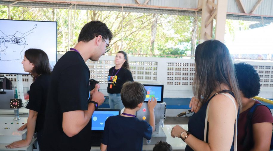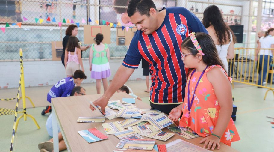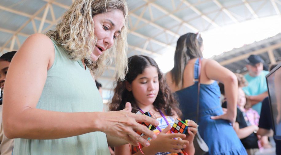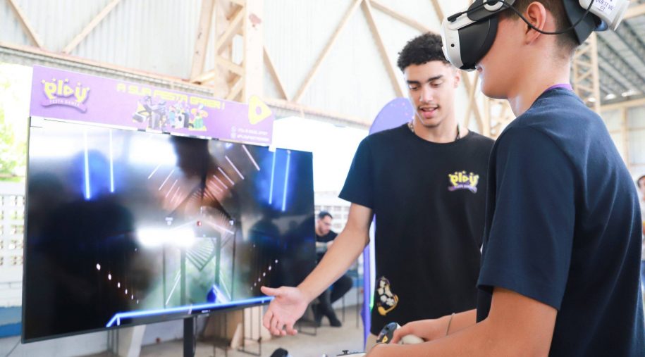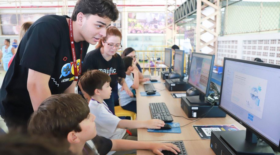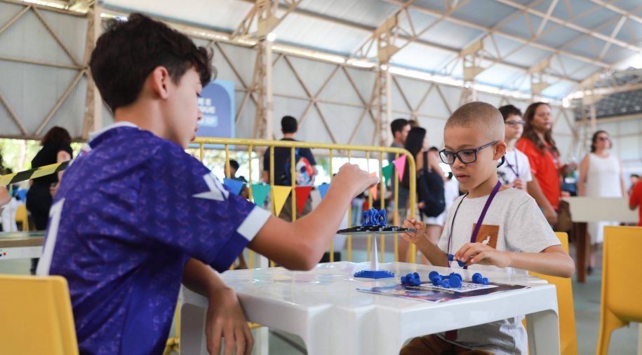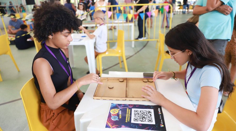 Após os discursos, foi a vez de aproveitar os recursos do evento: além dos jogos digitais e analógicos, oficinas criativas, competição de robótica, estação de realidade virtual, exposição TecMaker, entre outros. Sem querer perder nenhum dos atrativos, os participantes revelaram nas feições o quanto se divertiram e aprenderam no evento, até mesmo os adultos que acompanharam a euforia dos pequenos e jovens gamers. Confira nas fotos e “que venha 2026!”, como declarou a equipe de Mídia Educacional e Tecnologia, sob a liderança da gestora de Mídia Educacional e Tecnologia, Cláudia Zimmer, e do coordenador de Tecnologia Educacional, Rafael Gonçalves. Veja mais fotos!