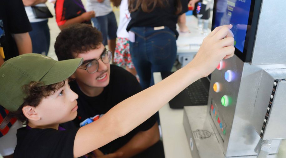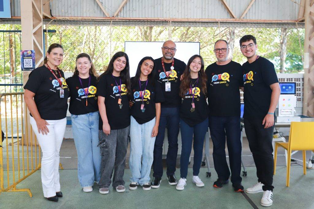 Uma novidade da edição foi a participação de convidados especiais para a troca de experiências: um grupo de estudantes da Escola Técnica de Eletrônica Francisco Moreira da Costa (ETE-FMC), de Minas Gerais. Assim como o Vieira, a ETE-FMC integra a Rede Jesuíta de Educação Básica, compartilhando do mesmo propósito de oferecer uma formação integral, pautada na excelência acadêmica, mas também nas chamadas soft skills, com o desenvolvimento de habilidades e competências norteadas pelos princípios humanistas cristãos e inacianos. No ramo da tecnologia educacional, a ETC-FMC promove anualmente uma feira tecnológica, a ProjETE, tendo trazido para o Vieira Games dois projetos que foram expostos do evento mineiro, realizado no início de outubro, como explica no vídeo a professora Fabiana Rodrigues. Assista!