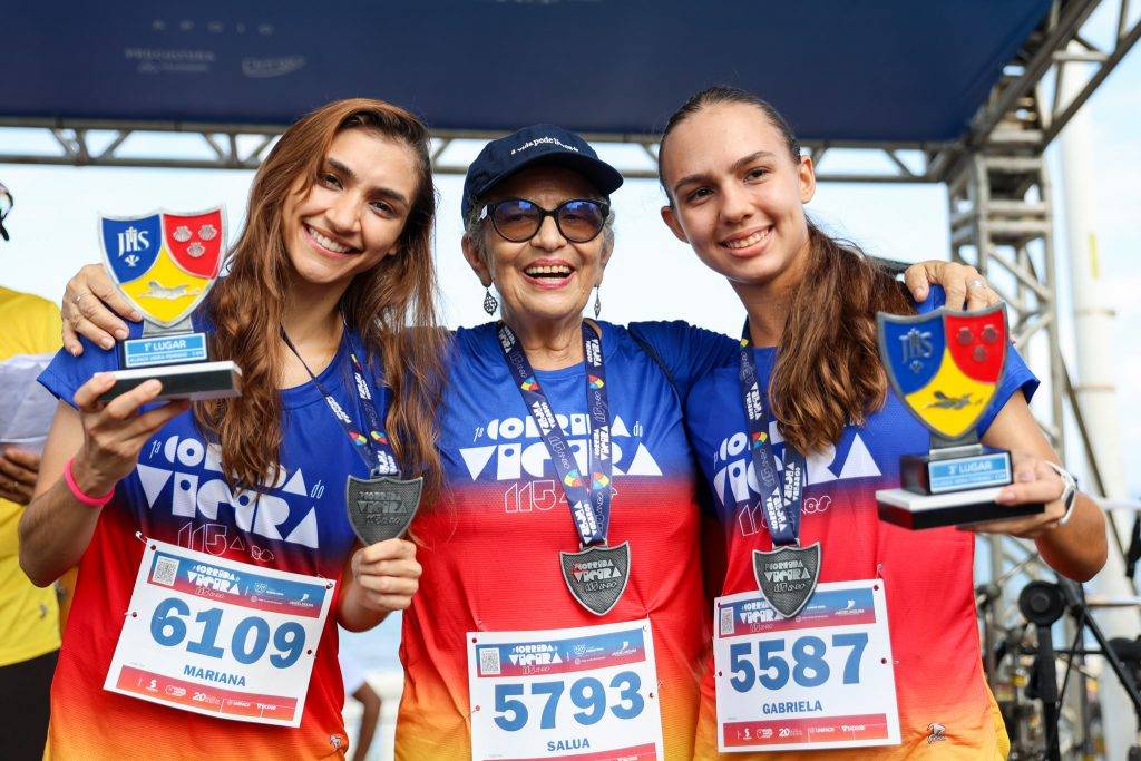 O pai vieirense Diego Alirio não fez por menos. Conquistou o 1º lugar, na modalidade 10 km e parabenizou o colégio. “Foi ótima essa iniciativa para celebrar o aniversário do Vieira, porque a corrida é o melhor evento para isso, porque, mesmo sendo um esporte individual, promove esse encontro de pessoas, no caso gerações vieirenses, ao mesmo tempo que incentiva a todas a buscar superar desafios, de forma saudável”, afirmou. Valdira Santos é atleta, acostumada a correr em grandes eventos, como a São Silvestre, e fez questão de participar da 1ª Corrida do Vieira. Ela conquistou o 1º lugar feminino, na modalidade 10 km, público geral. “Achei maravilhoso essa proposta do colégio, também educando as pessoas, incentivando quem nunca correu a praticar um esporte e cuidar da saúde”, declarou ela, que já conquistou 61 troféus e 200 medalhas em corridas de rua.