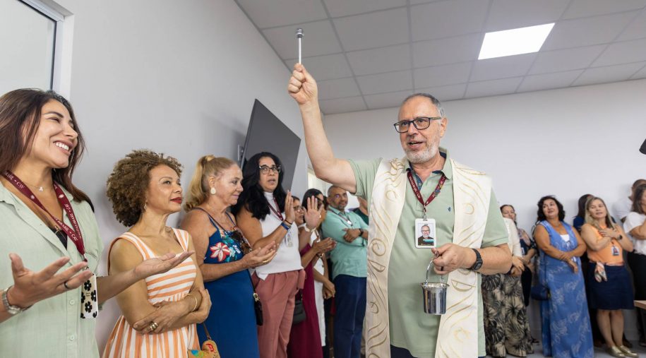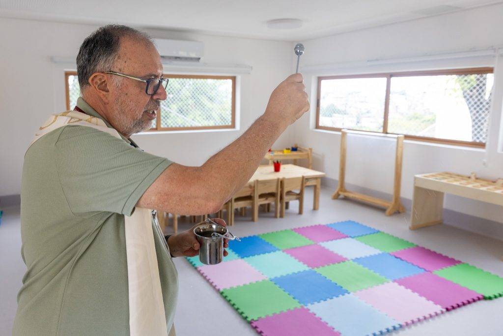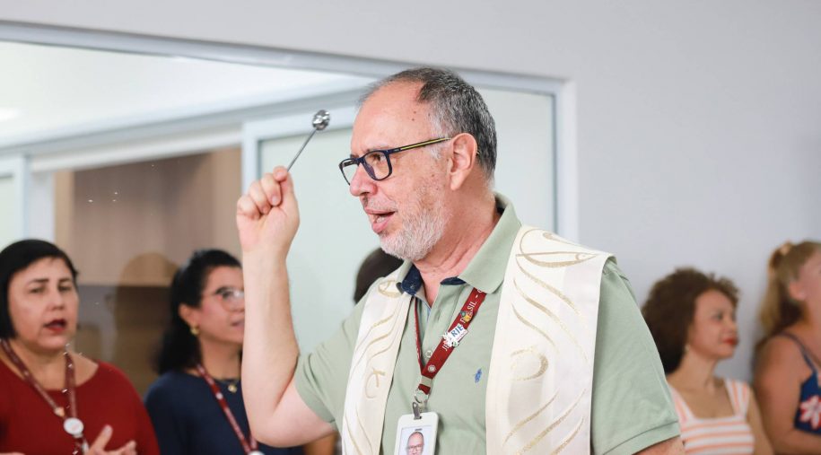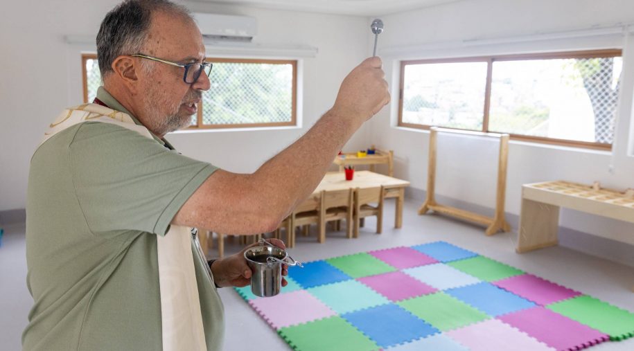 Prestes a completar 115 anos, o Colégio Antônio Vieira dá início nesta segunda-feira (9) às aulas da Educação Infantil, em um dia histórico para a comunidade escolar. Na última sexta-feira (6), o Conselho Diretivo, gestores, entre outros colaboradores da instituição, participaram de um momento de bênção das instalações, especialmente projetadas para as aprendizagens de crianças de 2 a 5 anos. As orações foram conduzidas pelo padre Emmanuel Araujo SJ, assistente espiritual da instituição. Na mesma oportunidade, também foi abençoado o novo Espaço Multiuso Padre Domingos Mianulli SJ, batizado em homenagem a um dos ex-diretores do Vieira. O evento contou com canções interpretadas pela equipe da Formação Cristã.